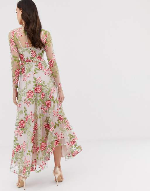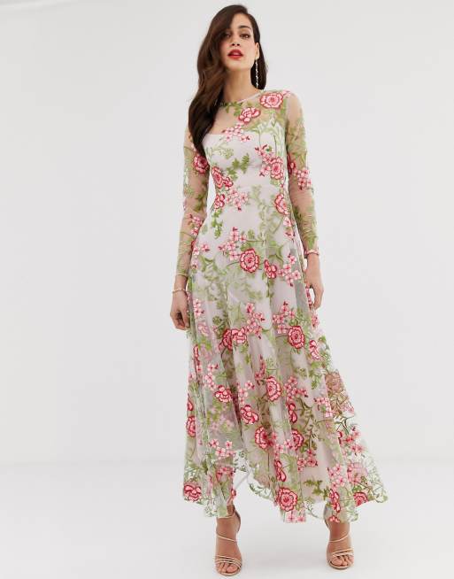 Asos edition floral embroidered hot sale maxi dress with cutabout skirt