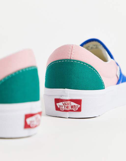 Blue and pink hot sale vans slip ons