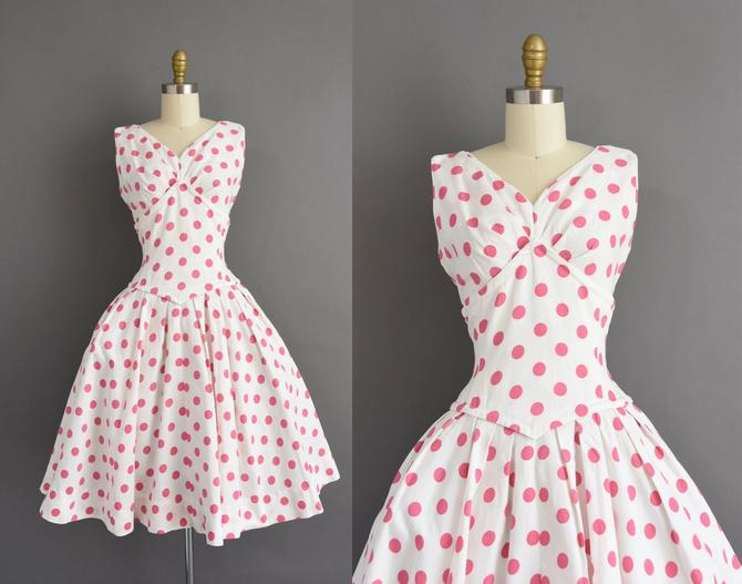 White dress with hot sale pink polka dots